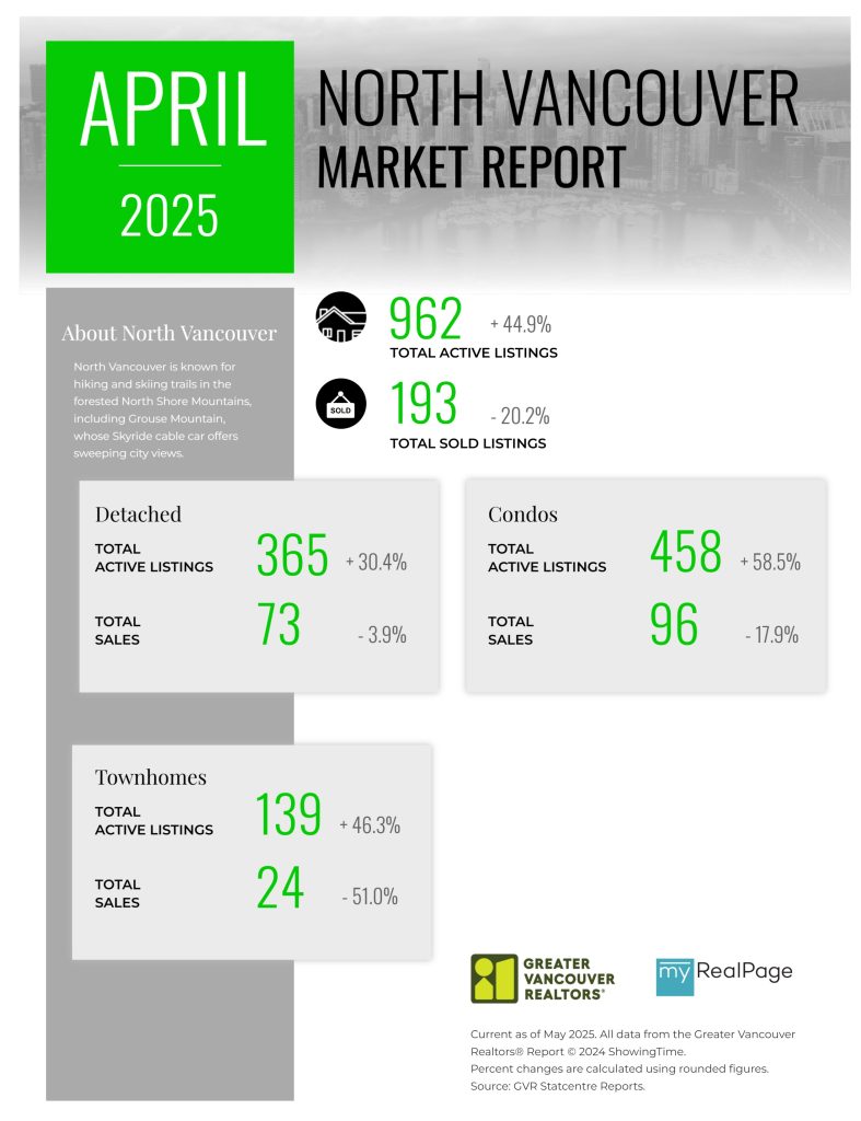 The Greater Vancouver REALTORS® (GVR) reports that residential sales in the region totalled 2,163 in April 2025, a 23.6 per cent decrease from the 2,831 sales recorded in April 2024. This was 28.2 per cent below the 10-year seasonal average (3,014).