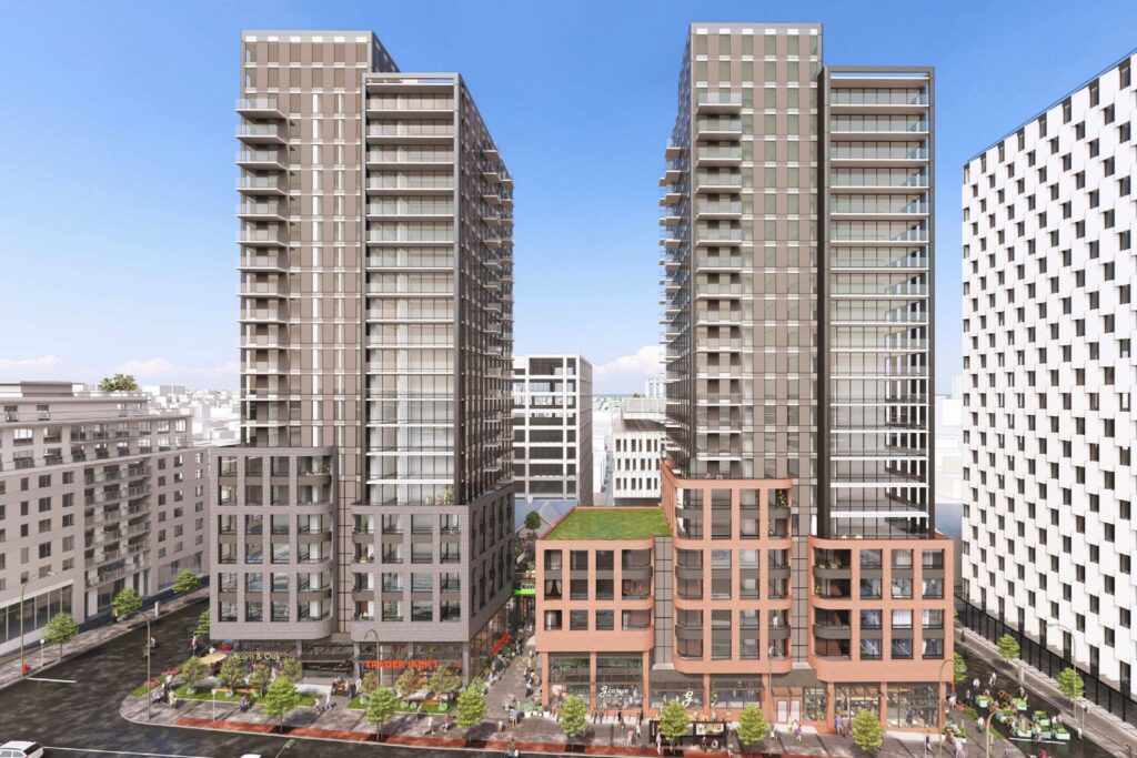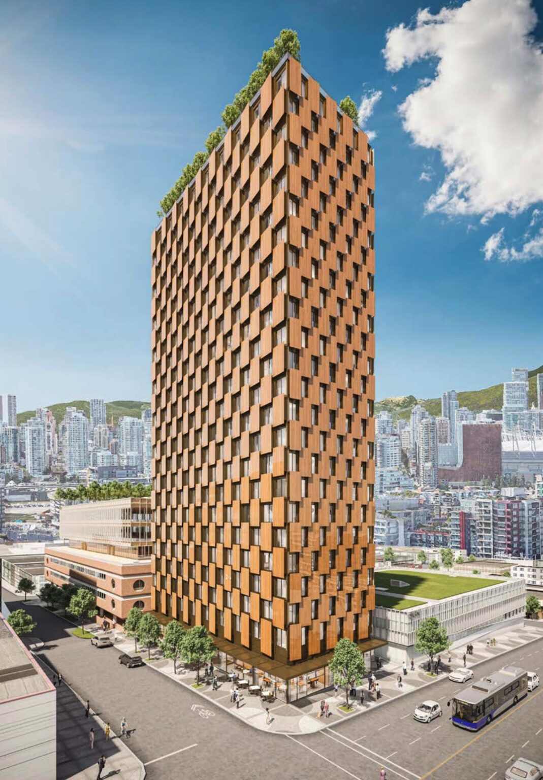 October 2022 artistic rendering of Prototype/M5 at 2015 Main St., Vancouver. (Henriquez Partners Architects/Westbank)